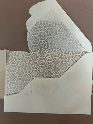 The inspiration came from the inside decoration of an envelope that I noticed when a friend sent me a greeting card.