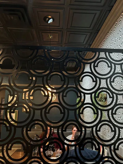 The inspiration is a decorative wall divider in an Italian restaurant in Virginia called Milano’s.