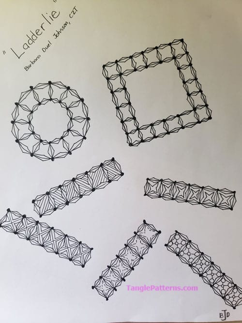 In this image Barbara shares a few ideas on ways to embellish Ladderlie for variations: