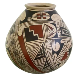 I first found this pattern inspiration on the same piece of Mata Ortiz pottery that inspired the tangle Tam, but I have since seen it used on other Pueblo pottery. As with the tangle Tam, Mata Ortiz (Mexico) pottery often has finely painted, intricate geometric motifs.